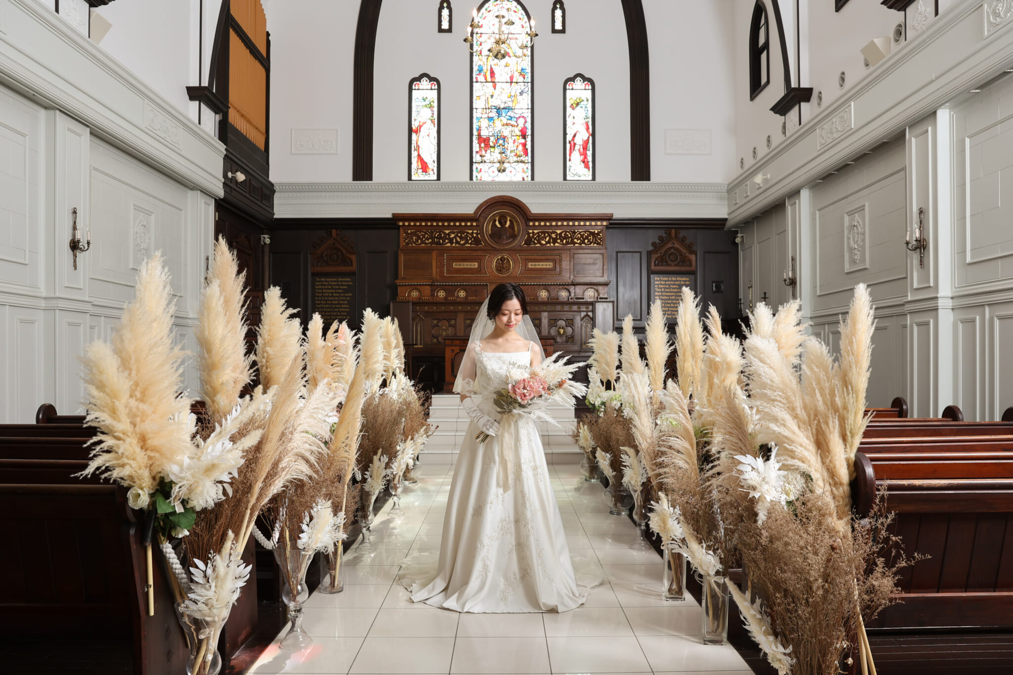 ◆ステンドグラス煌めくアンティーク教会で感動の挙式体験*厳かな空間で永遠の誓いを
