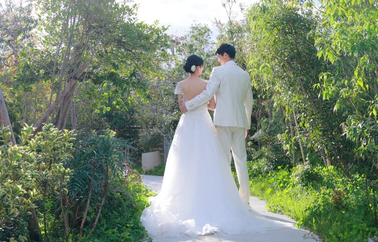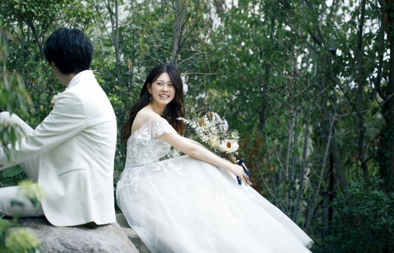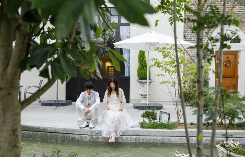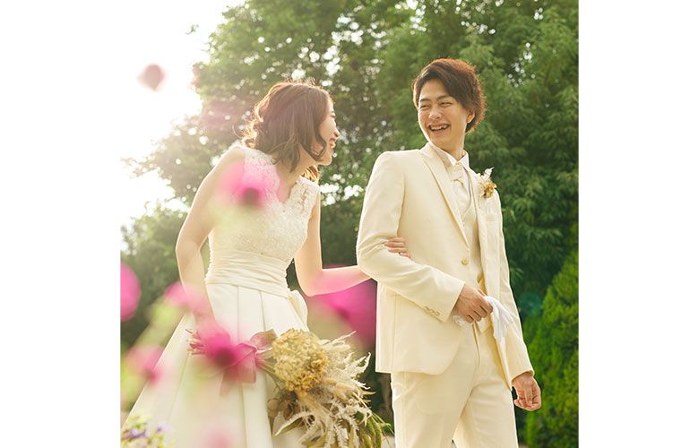 緑の香りや木々の光あふれるガーデンでは、おだやかな時間が流れ、自然体なお二人を映し出します。