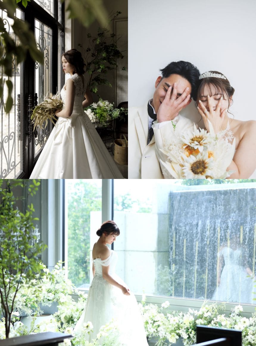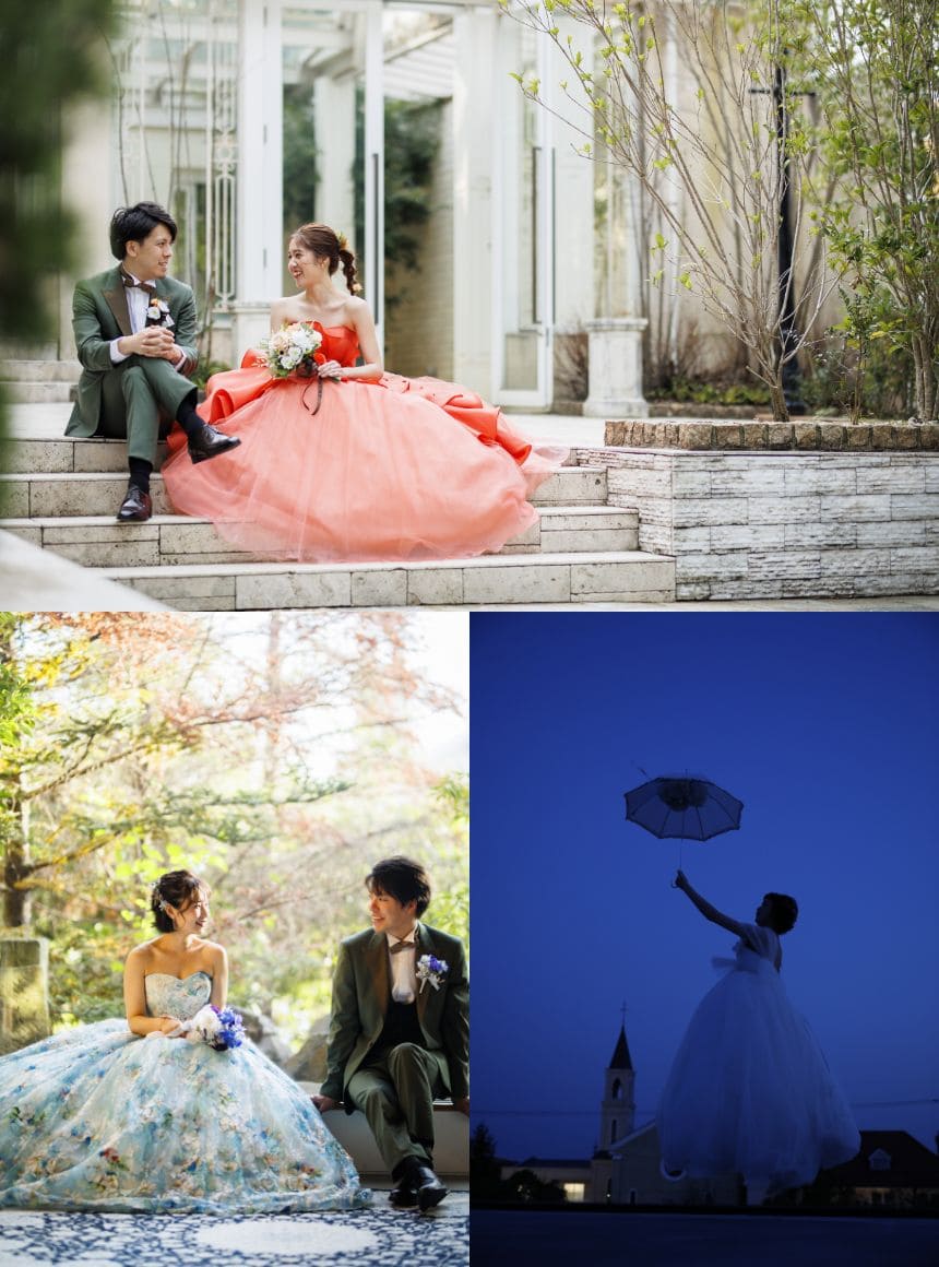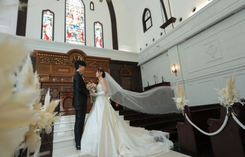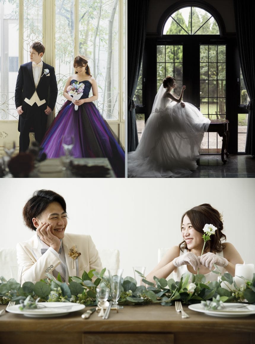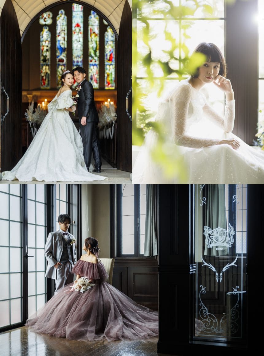 ステンドグラスが輝く、140年前のイギリスの教会を再現した歴史ある教会はもちろん、その時代を再現したアンティーク感溢れる空間、自然体でいられるナチュラルな空間、豊富なシチュエーションでの撮影が出来ます。 一つの場所に留まらず、館内全体を使って撮影し、自由に、思いのままに撮影を。