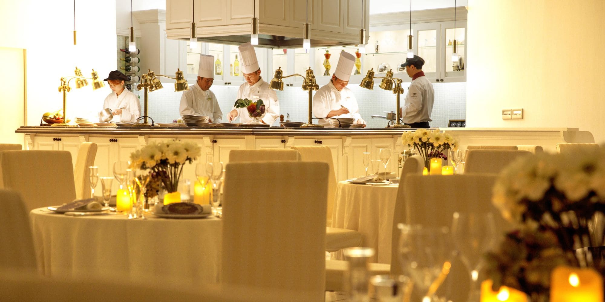 シェフの技を間近に感じるオープンキッチン。
